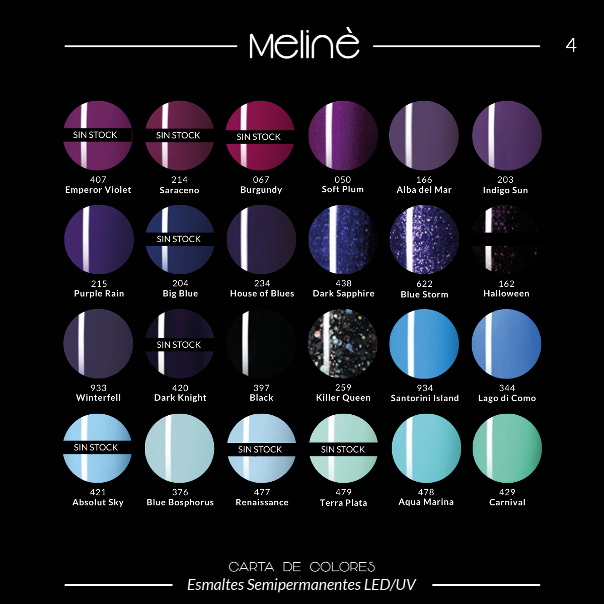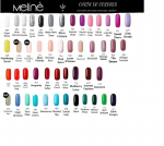 Esmalte Color Semipermanente Gel para cabinas LED/UV. El esmalte Meliné posee más de 20 variaciones de color y un impresionante poder cubritivo.