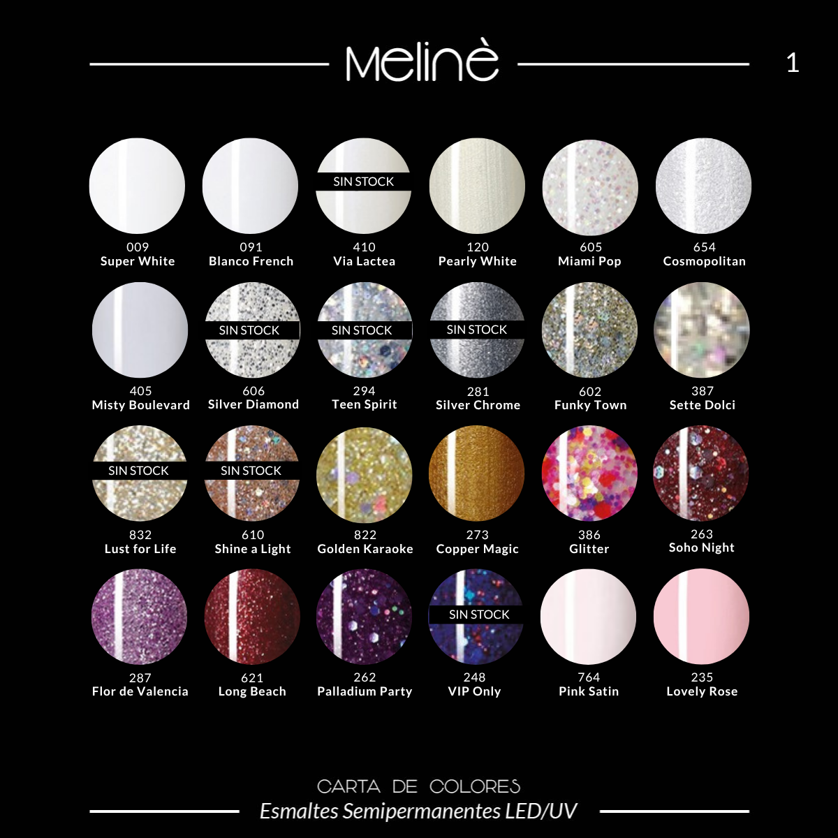 Esmalte Color Semipermanente Gel para cabinas LED/UV. El esmalte Meliné posee más de 20 variaciones de color y un impresionante poder cubritivo.
