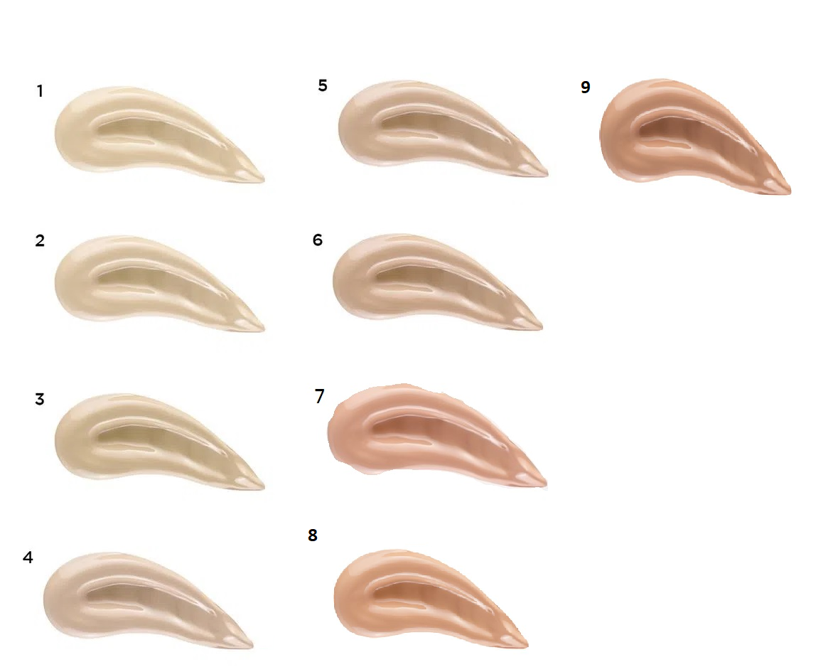 Diversos colores disponibles para diferentes subtonos y tonos de piel.