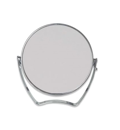 Espejo de Mesa redondo de Metal con bordes de plastico transparente.