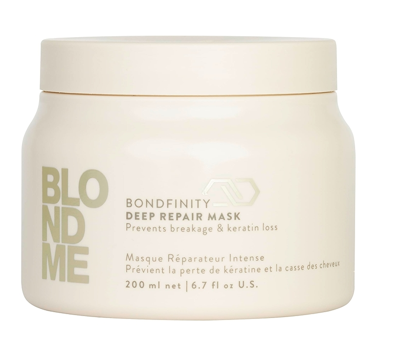 Transforme el cabello rubio dañado con Schwarzkopf BLONDME Bondfinity Deep Repair Mask - impulsado por la tecnología BONDFINITY para un cabello 20 veces más fuerte y sano tras un solo uso.