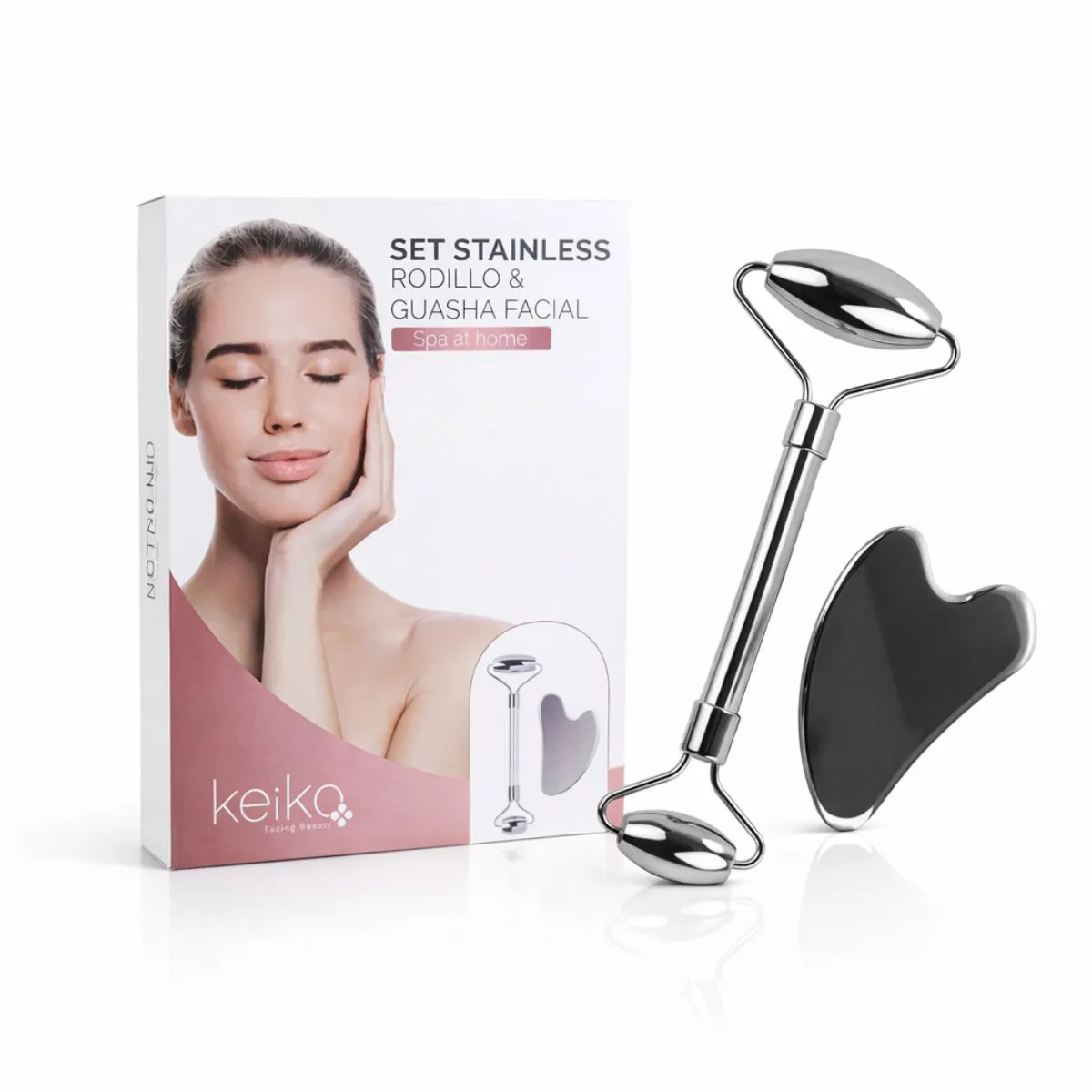 Set de masaje facial en acero inoxidable diseñado para reducir la hinchazón, aportar un efecto refrescante que alivia la ansiedad y la tensión muscular.