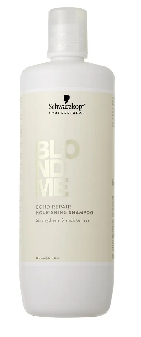 El champú nutritivo reparador de enlaces Schwarzkopf Blondme limpia suavemente el cabello rubio y decolorado, hidratándolo y fortaleciendo su estructura. Gracias a la tecnología Bond Repair, reduce la rotura del cabello hasta en un 80 % y repara los daños. Fortalece el cabello mediante la reconstrucción de los enlaces internos y repara daños equivalentes a dos decoloraciones. Su fórmula nutritiva con aceite de almendras y té blanco suaviza el cabello, le aporta flexibilidad y un brillo saludable.